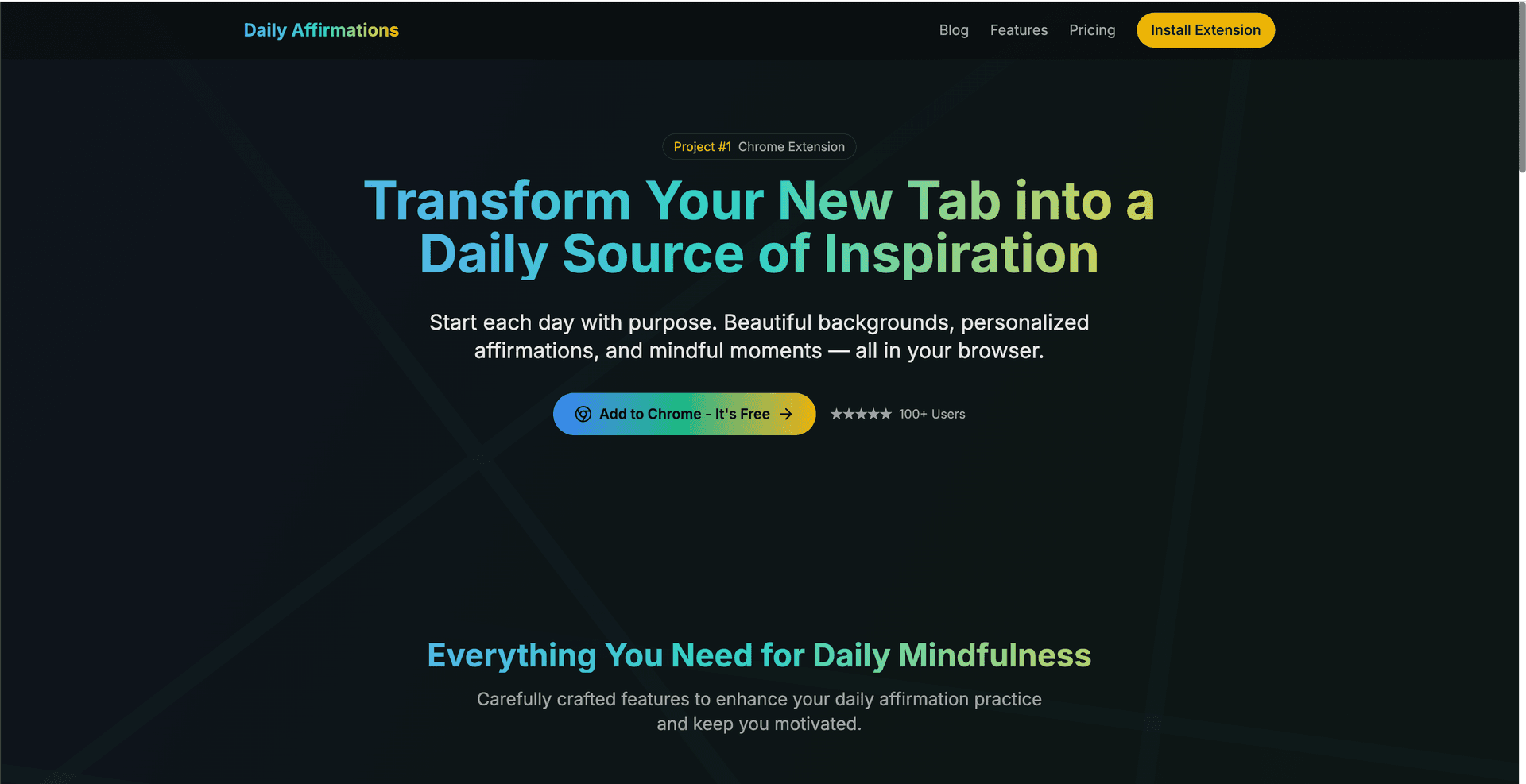 - Built a simple extension with motivational messages, a clock, pretty backgrounds, and weather widgets.